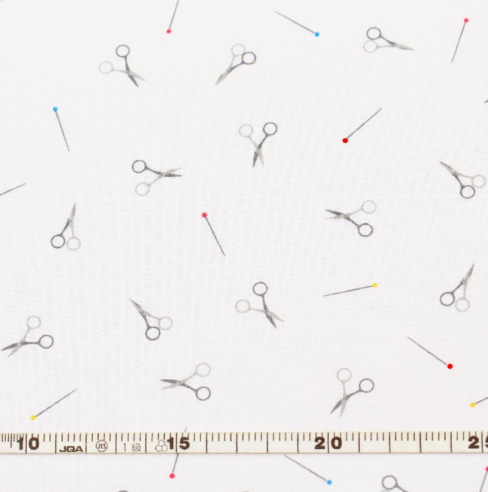 小さなハサミとまち針の柄 byフリースピリット 約110×60cm